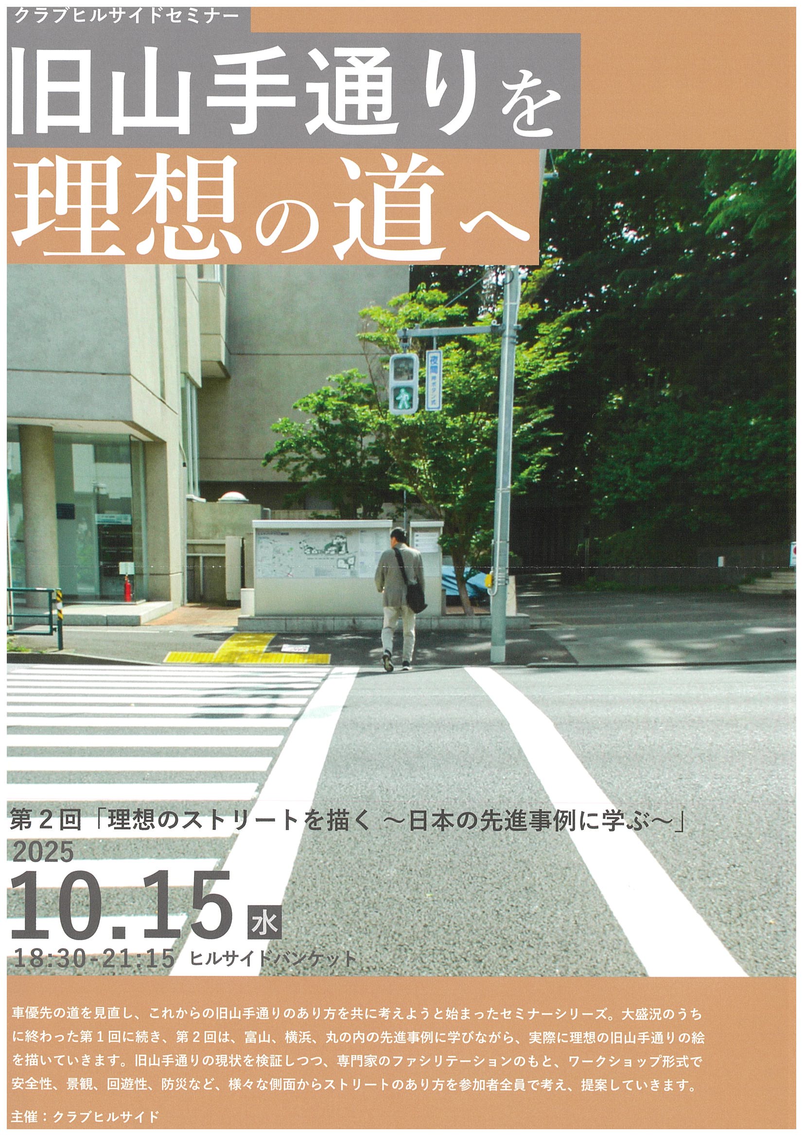 第2回「理想のストリートを描く~日本の先進事例に学ぶ~」にて、千葉がPart 2 ワークショップ「理想の旧山手通りを描く」のファシリテーターとして参加します。